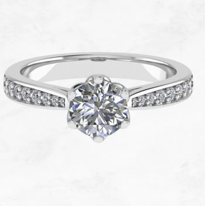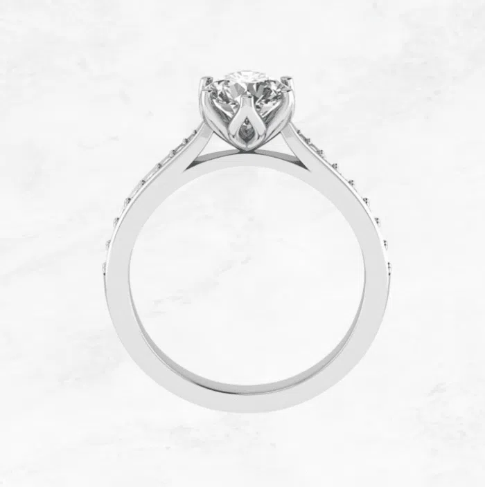 Belgium Diamonds 6-Prong Pavé Solitaire Ring in lotus style beautiful setting.