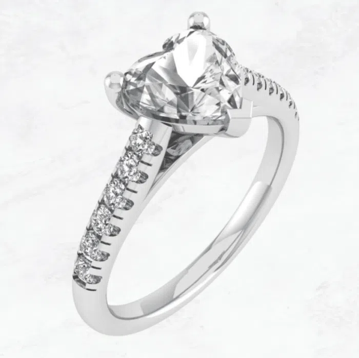 Can be set with 0.50 – 5 ct Heartshape diamond in the center