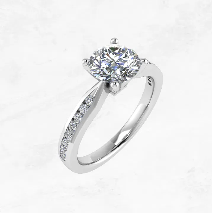 Closely spaced Natural brilliant cut diamonds designed to enhance the center stone.