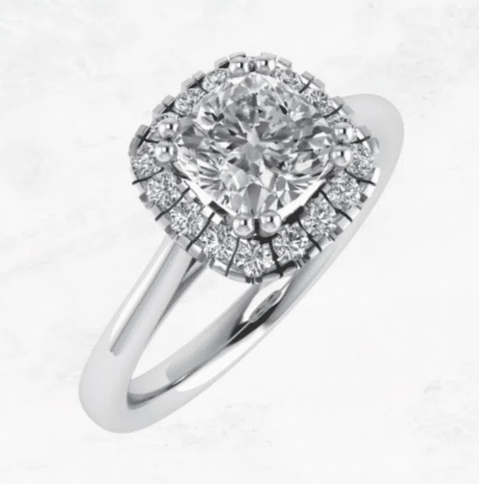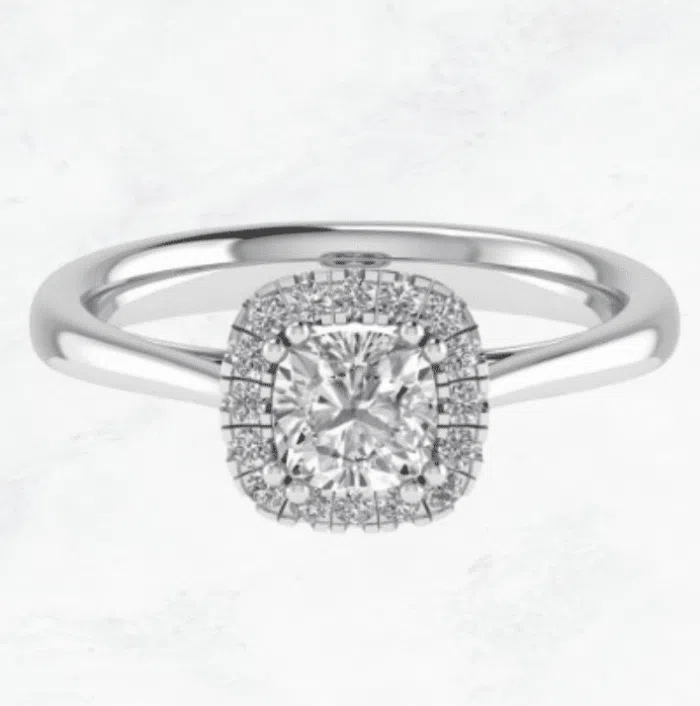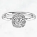 Sparkle with elegance – Belgium Diamonds Halo Cushion/Asscher Diamond Ring. Perfect for engagement or anniversary. Crafted in Antwerp, Belgium.