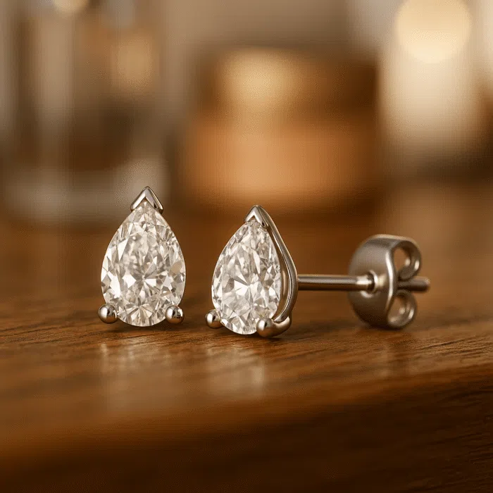Pear Solitaire Diamond Stud Earrings in White Gold