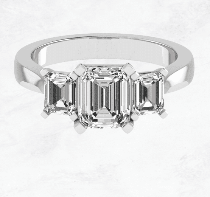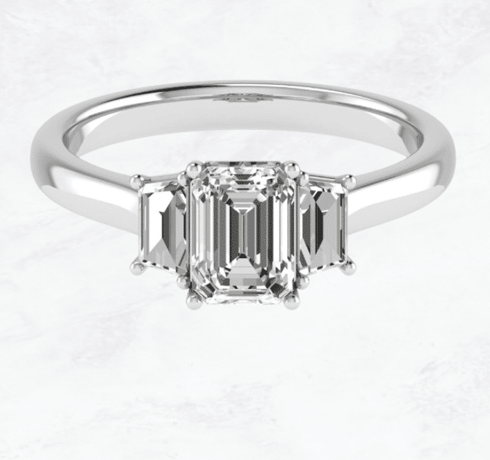 Trilogy Ring with All Emerald and Baguette Diamonds