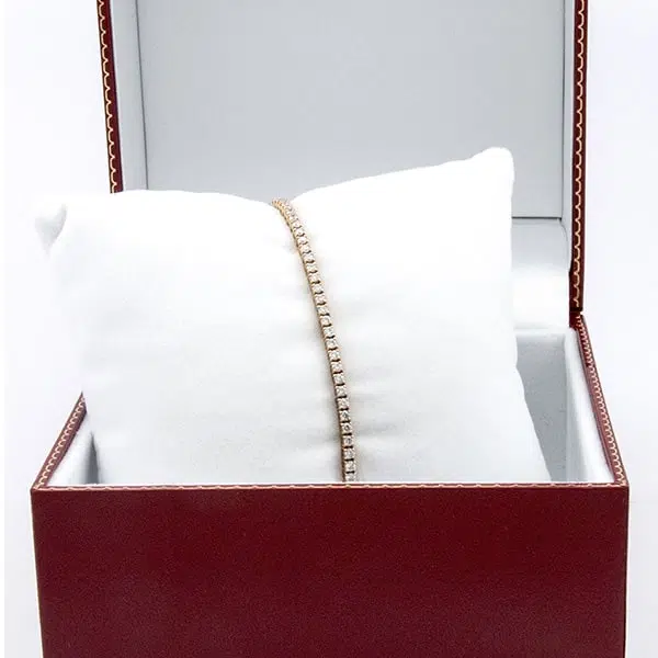 This classic diamond tennis bracelet features 81 round, Color E/F, Clarity VS/Top-SI diamonds set in a 18k white, yellow or pink gold bracelet. Each diamond is 0.02 ct. giving this lovely tennis bracelet a *total carat weight of 1.60 ct.