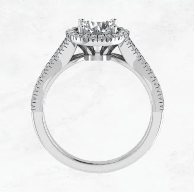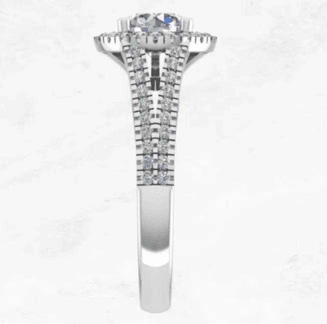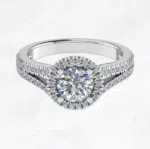 Belgium Diamonds Split Shank Round Brilliant Cut Diamond Halo Ring is an elegant ring designed for maximum brilliance and sparkle. This exquisite diamond ring can serve as your engagement ring or as a beautiful anniversary ring.