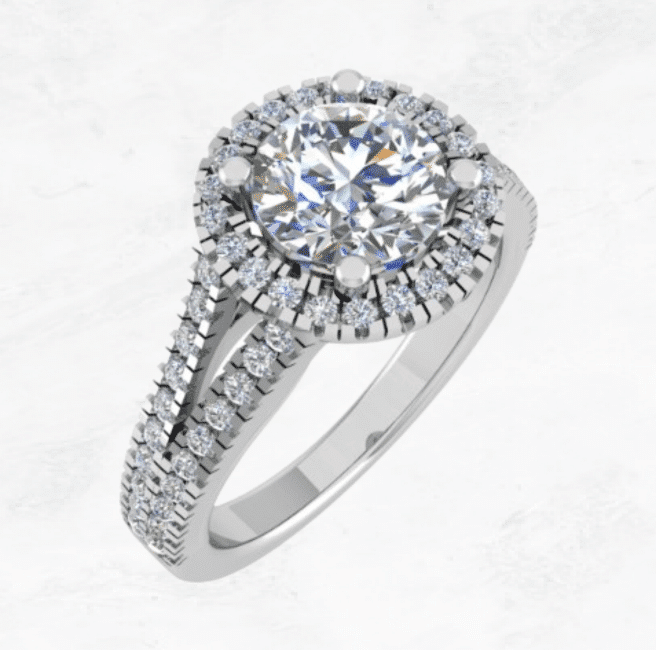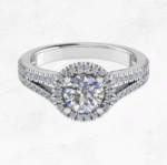 Belgium Diamonds Split Shank Round Brilliant Cut Diamond Halo Ring is an elegant ring designed for maximum brilliance and sparkle. This exquisite diamond ring can serve as your engagement ring or as a beautiful anniversary ring.