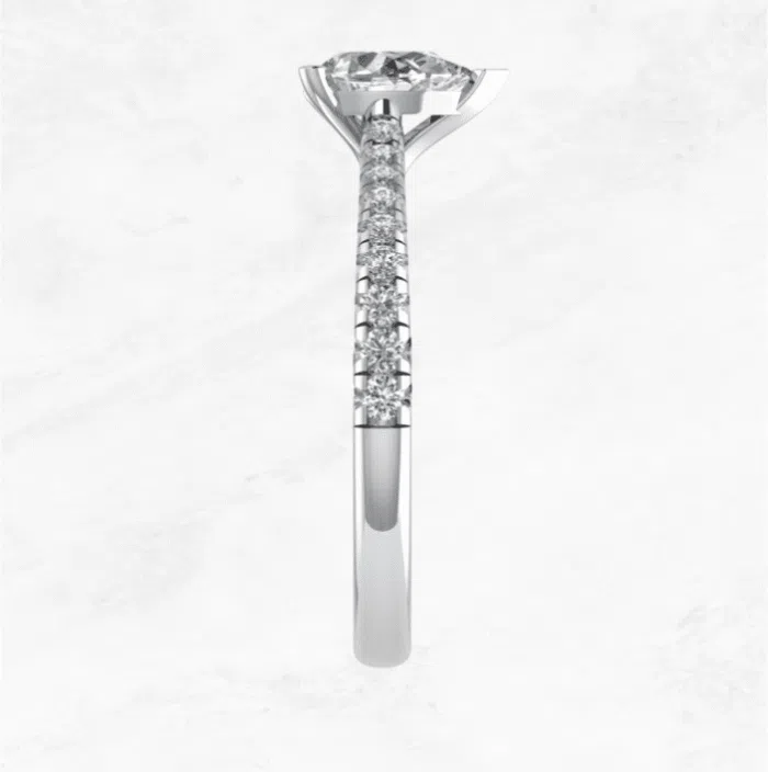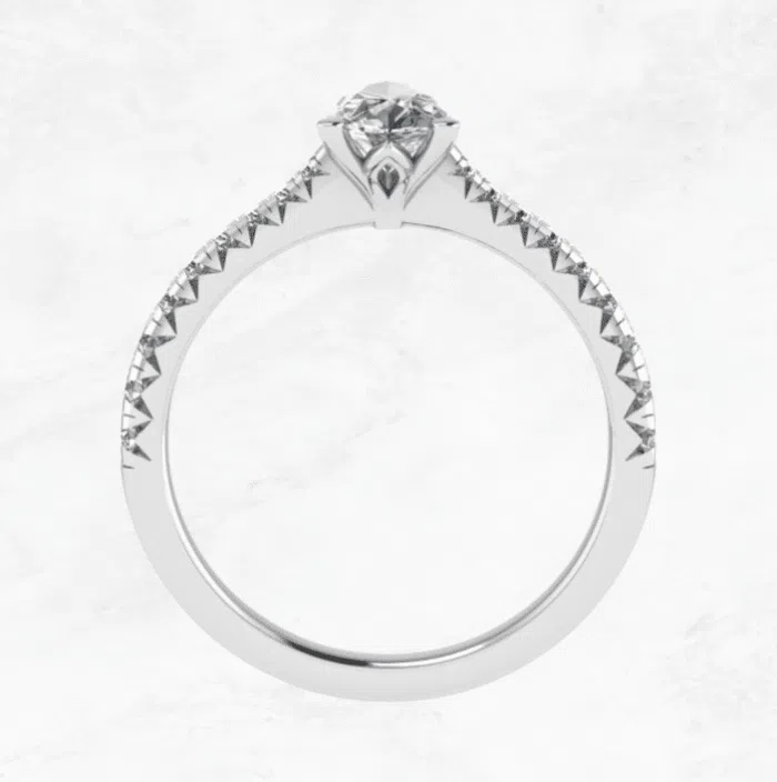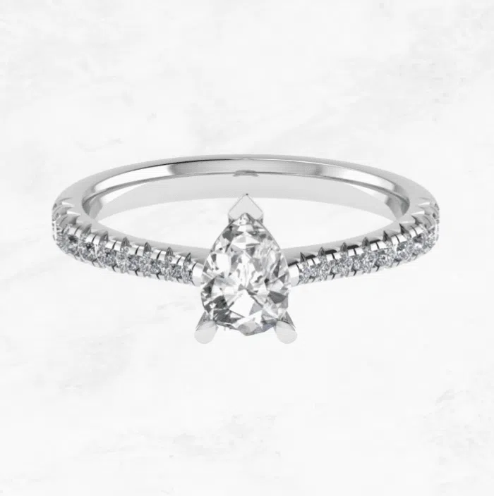 Sparkle with elegance – Belgium Diamonds Elegant Pave Ring for Pear Diamonds. Perfect for engagement or anniversary. Crafted in Antwerp, Belgium.