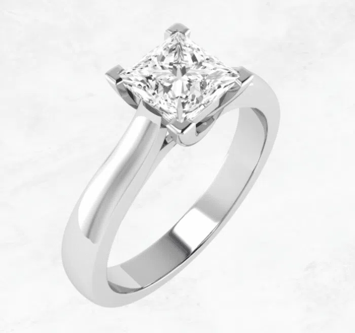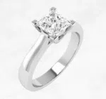 Belgium Diamonds Princess cut Solitaire Diamond Ring is an 18k gold, L-shaped, 4-prong mounting with a stylish band. By using these L-shapes prongs we protect the corners of the Princess cut diamond while giving the stone all the room to catch maximum light to sparkle.