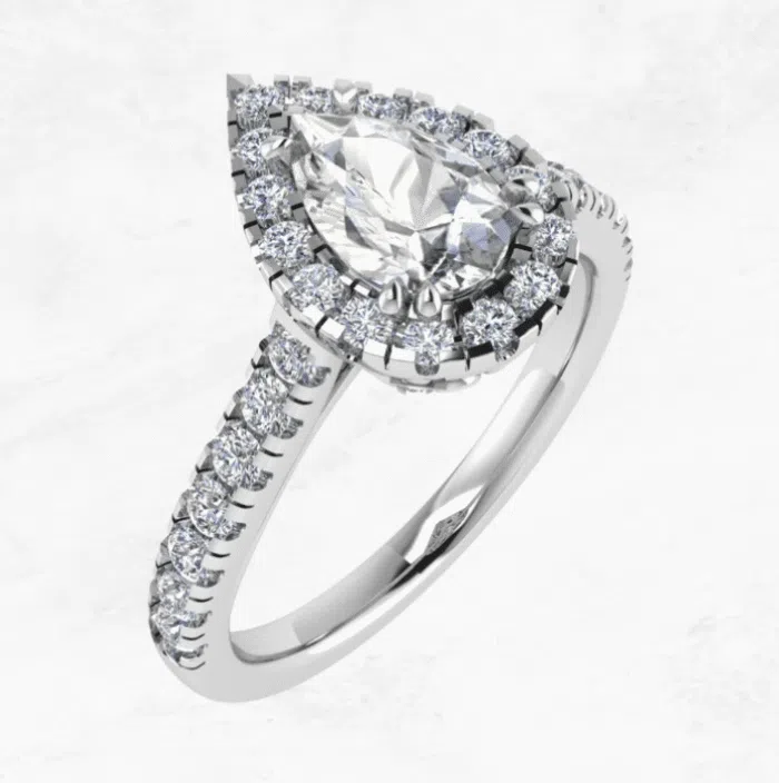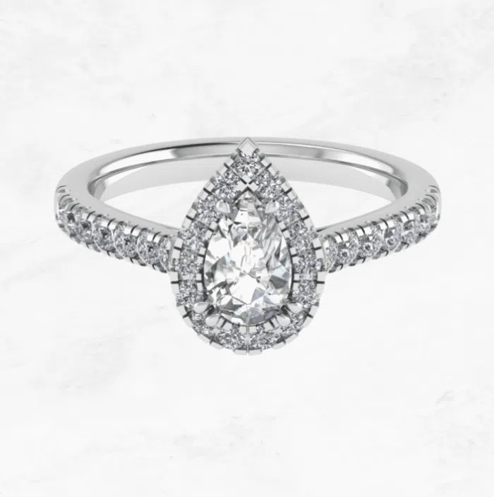 Belgium Diamonds Luxury Pear Diamond Halo Ring is an elegant ring designed for maximum brilliance and sparkle. This exquisite diamond ring can serve as an engagement ring as well as a beautiful anniversary ring.